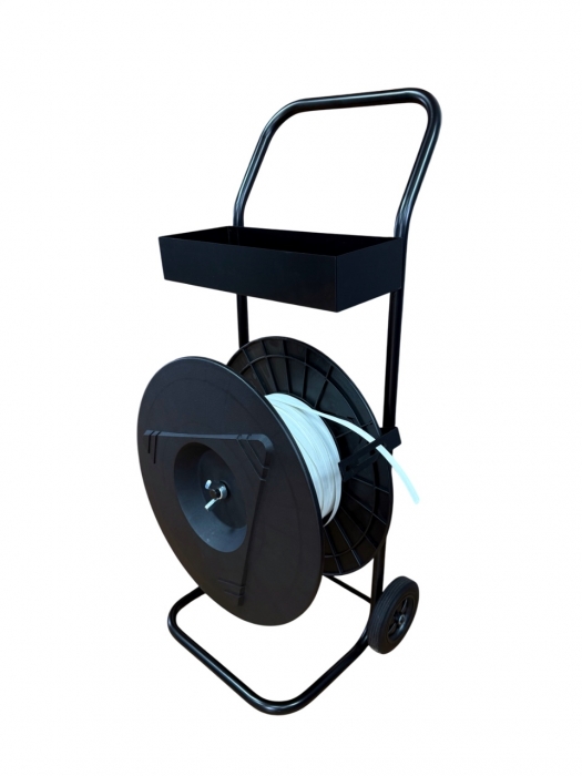 Диспенсер для полипропиленовых (ПП) лент позволяет удобное перемещение по складу имеет ящик для хранения стреппинг инструментов.